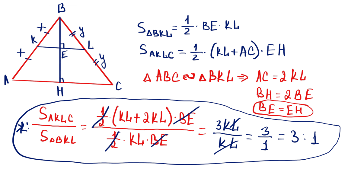 № 11 Үшбұрышты орта сызығымен бөлгенде пайда болған төртбұрыштың ауданының үшбұрыштың ауданына қатынасын табыңыз.