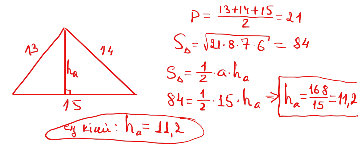 № 23 Қабырғалары 13; 14 және 15 болатын үшбұрыштың ең кіші биіктігін табыңыз.