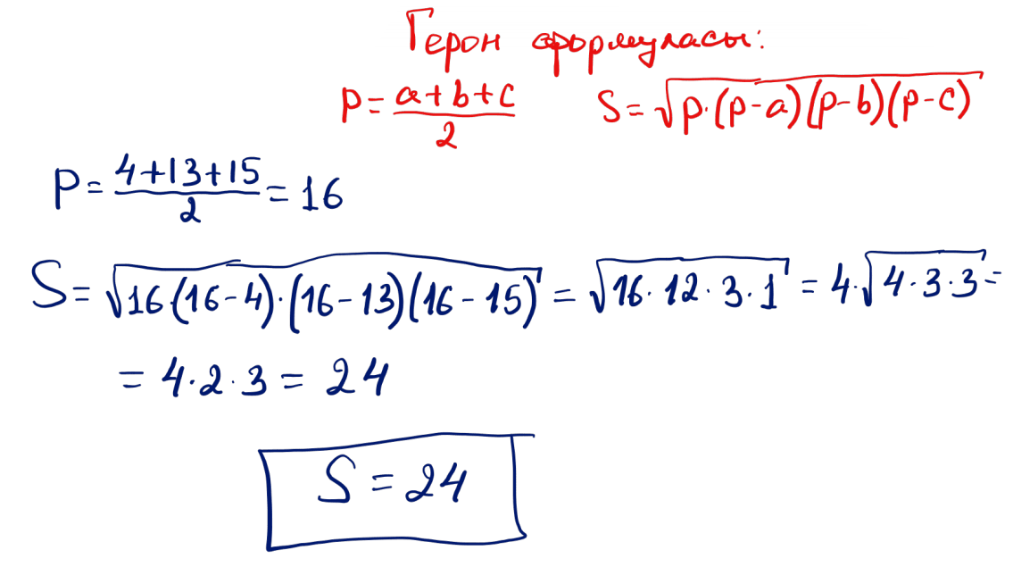 № 4 Қабырғалары 4; 13 және 15 болатын үшбұрыштың ауданын табыңыз.